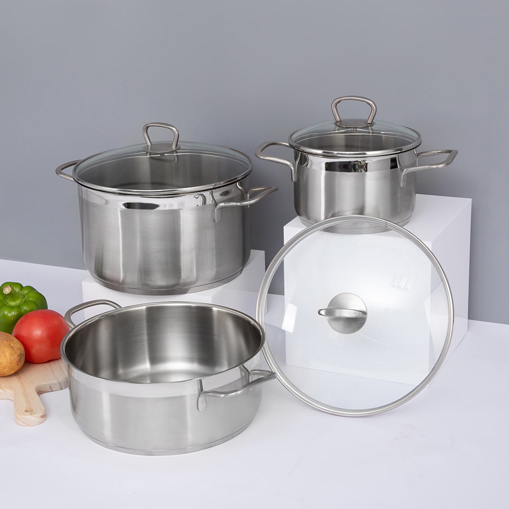 Saves time and energy: the secret is the three-ply bottom (stainless steel + aluminium + stainless steel), which distributes the heat evenly for faster cooking. This is why you can keep the heat low while cooking, which saves energy.